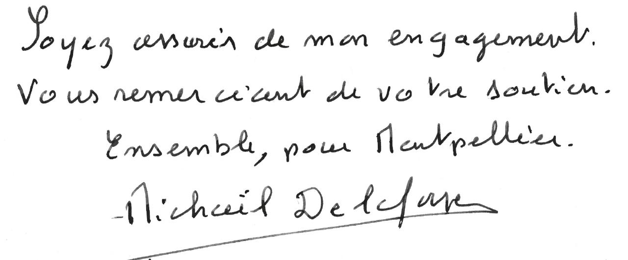 Vous connaissez mon amour pour notre ville à l’histoire millénaire, son énergie créative, ses universités et centres de recherches qui contribuent au progrès et sa grande tradition de tolérance. Chacun d’entre vous est une richesse, vous rencontrer m’a toujours apporté. Rien n’est acquis dans un monde fragile où le changement climatique est un défi, où les forces du repli et du dénigrement sont à l’oeuvre, où le populisme menace la démocratie. Ce mandat m’a donné de l’expérience et davantage de solidité, pour maintenir un cap vers un futur désirable, pour que Montpellier, demain, soit plus forte, en étant plus écologique, solidaire, innovante et fraternelle.